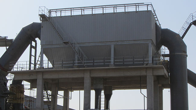 带有粉尘的气体从进气口进入矿粉集尘除尘器设备时,它首先撞击进气口中间的倾斜隔板,气流变成灰斗,同时,气流速度变慢. 由于惯性,气体中的粗颗粒直接落入灰斗中,从而起到预集尘的作用. 进入灰斗的空气流折回并向上穿过滤袋,灰尘被截留在滤袋的外表面上. 净化后的气体进入滤袋室上部的净化室,并被收集到排气管中排出。